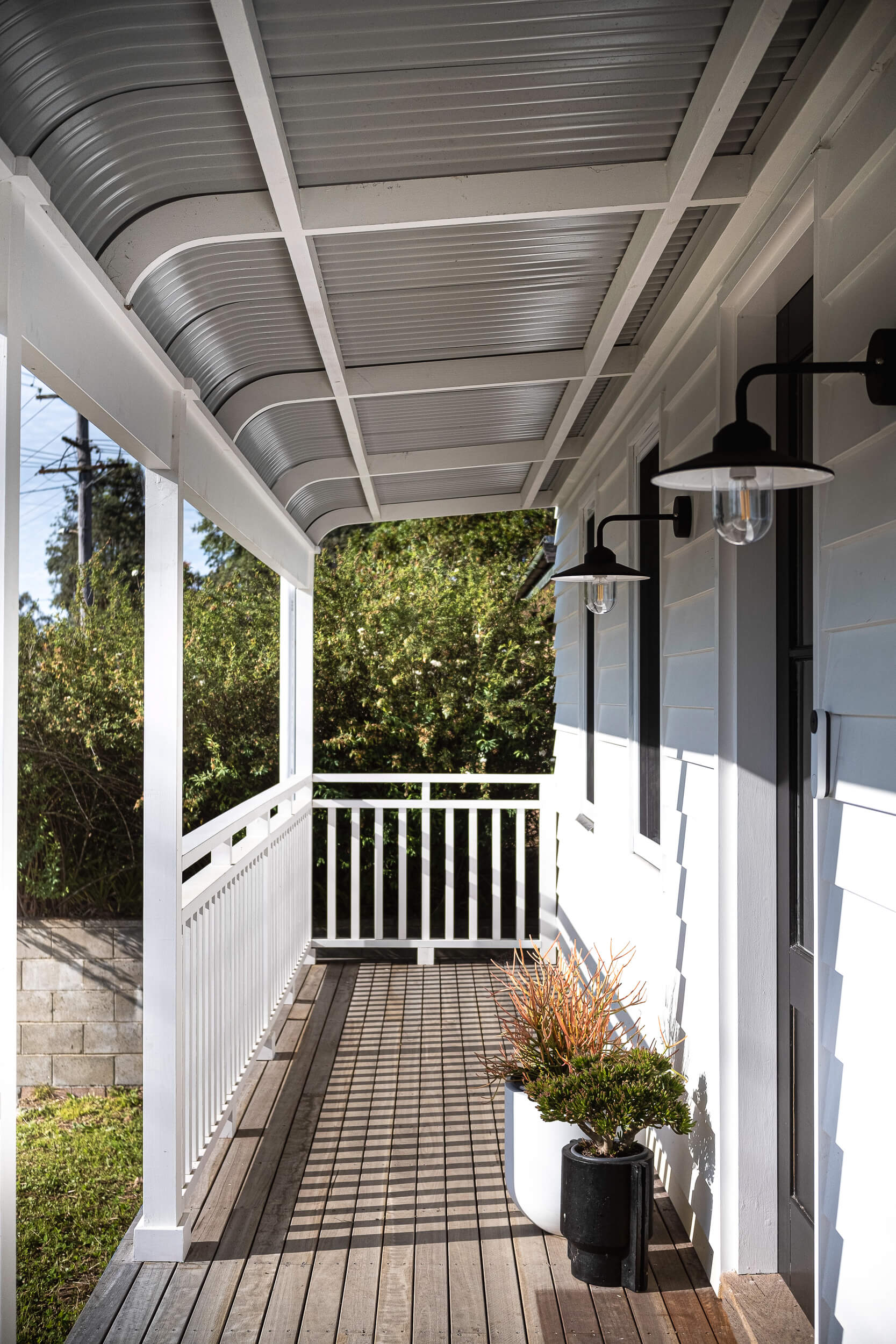 On a gradually sloping block we worked with water retaining issues but it worked in their favour creating that beautiful grand street presence you can see in the photos.